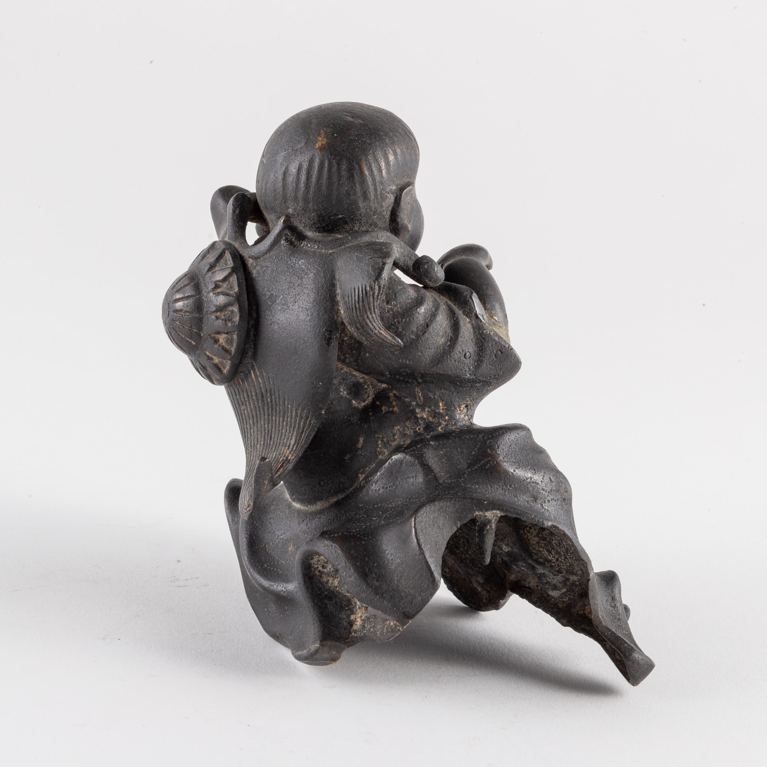 Figurka przedstawia półleżącą-półsiedzącą postać Buddy (?) o radosnej twarzy. Figurka ocalała spod gruzów po Powstaniu Warszawskim, pochodzi ze zbiorów wuja Jana Kulmy, marszałka senatu RP, prof. Juliusza Szymańskiego.